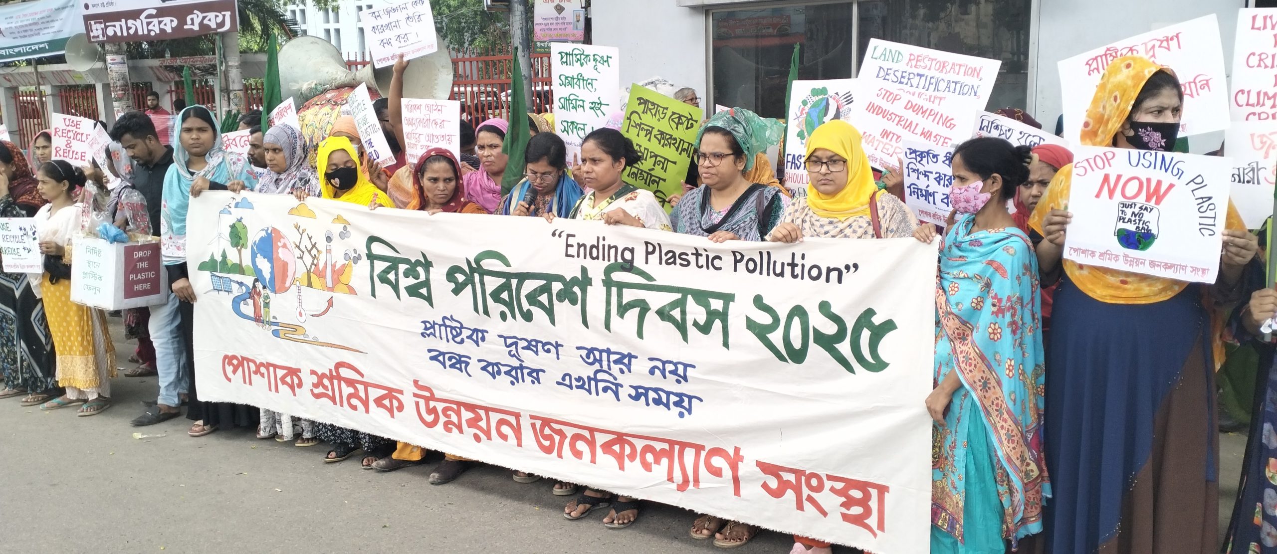 জিএনএ ডেস্ক, ঢাকা: বিশ্ব পরিবেশ দিবস ২০২৫ উদযাপন উপলক্ষে এই বছরের নির্ধারিত প্রতিপাদ্য ‘ENDING PLASTIC POLLUTION’ ‘প্লাস্টিক দূষণ আর নয়' - সামনে রেখে পোশাক শ্রমিক উন্নয়ন জনকল্যাণ সংস্থা মানববন্ধন ও সমাবেশ আয়োজনের মধ্যে দিয়ে দিবসটিকে উদযাপন করছে।