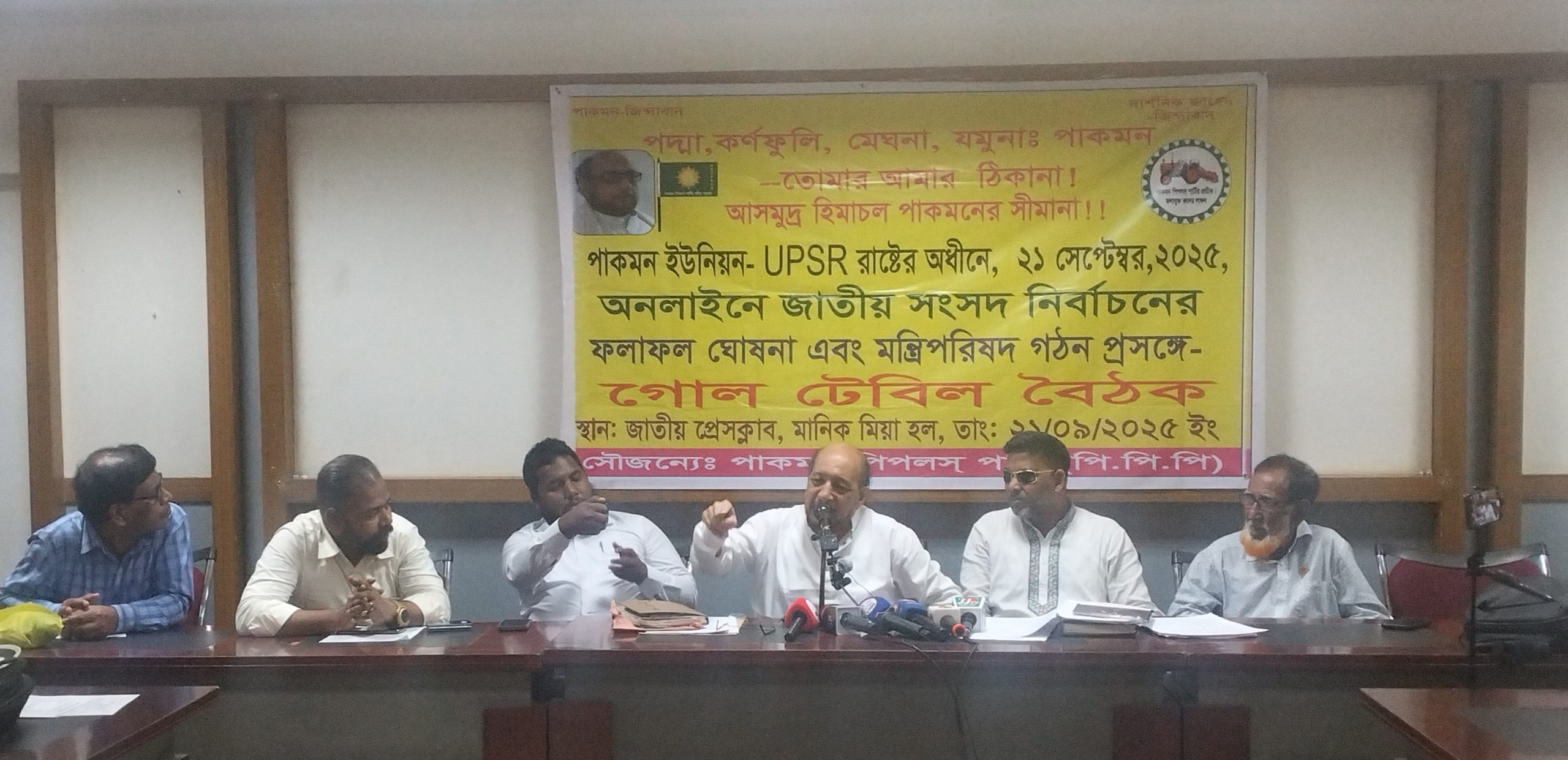 আজ রাজধানী ঢাকার জাতীয় প্রেস ক্লাবের দ্বিতীয় তলায় মানিক মিয়া হলে অনুষ্ঠিত এই সভায় আরোও বক্তব্য রাখেন দলের মহাসচিব খন্দকার আশরাফ ছিদ্দিকী, দলের যুগ্ম মহাসচিব আব্দুল রহমান, দলের সিনিয়র যুগ্ম মহাসচিব ডা. সাইফুল ইসলাম, দলের সিনিয়র সহ সভাপতি ডা. ফাহিমা সুলতানা, দলের সহ সভাপতি মোঃ শাহ্ আলম রাসেল, পাকমন মুক্তিযোদ্ধা দলের চেয়ারম্যান মাহবুব আহমেদ, পাকমন পিপলস্ পার্টির বানিজ্য বিষয়ক সম্পাদক ডা. রেজাউল করিম রেজা, দলের সিনিয়র যুগ্ম মহাসচিব মোঃ উমর ফারুক রবিন, পাকমন পিপলস্ পার্টির সিনিয়র যুগ্ম সাংগঠনিক সম্পদক (অবঃ) সেনা কর্মকর্তা মোঃ রেজাউল করিম রেজা, পাকযন শ্রমিক দলের সভাপতি মোঃ ফেরদৌস খান, পাকমন শ্রমিক দলের সহ সভাপতি মোঃ সাকিব খান, পাকমন পিপলস্ পার্টির মনোনিত সংসদ সদস্য বৃন্দ, প্রমুখ ।