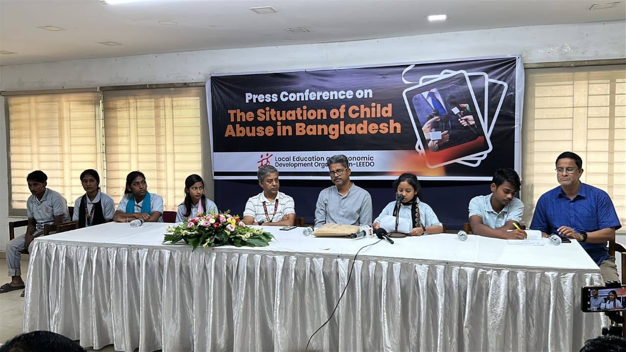 নুরুউল্লাহ হাওলাদার সবুজ, ঢাকা:   বাংলাদেশে শিশু নির্যাতনের ক্রমবর্ধমান পরিস্থিতি নিয়ে গভীর উদ্বেগ প্রকাশ করেছে স্থানীয় শিক্ষা ও অর্থনৈতিক উন্নয়ন সংস্থা লিডো (Local Education and Economic Development Organization-LEEDO)। আজ জাতীয় প্রেসক্লাবে লিডোর “Young Journalist Changemaker Group for Creating Positive Outlook Towards Oppressed Children” দ্বারা আয়োজিত এক সংবাদ সম্মেলনে সংগঠনটির শিশু-কিশোর সাংবাদিক দল জানায়, শিশু নির্যাতন এখন ভয়াবহ সামাজিক সংকটে রূপ নিয়েছে এবং অবিলম্বে কার্যকর পদক্ষেপ গ্রহণ করা জরুরি।