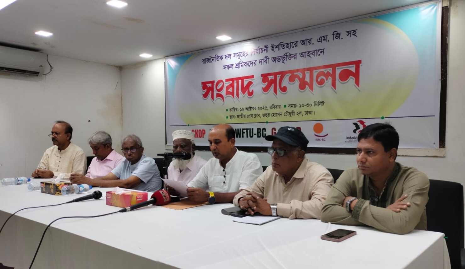 নুরুউল্লাহ হাওলাদার সবুজ, ঢাকা:  সকল রাজনৈতিক দলসমূহের নির্বাচনী ইশতিহারে আর.এম.জি.সহ সকল শ্রমিকদের দাবি অন্তর্ভুক্তি করার আহবান জানিয়ে সংবাদ সম্মেলন করে আর. এম. জি. ওয়ার্কিং গ্রুপ কোর কমিটি। আজ ১২ই অক্টোবর ২০২৫ সকাল সাড়ে দশটায় রাজধানী ঢাকার জাতীয় প্রেসক্লাবের জহুর হোসেন চৌধুরী হলে এক সংবাদ সম্মেলনের আয়োজন করেন। যেখানে লিখিত বক্তব্য পাঠ করেন সালাউদ্দিন স্বপন, সদস্য, কেন্দ্রীয় কমিটি আইবিসি।