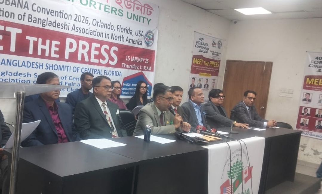 নুরুউল্লাহ হাওলাদার সবুজ, ঢাকা: বিশ্বজুড়ে বসবাসরত বাংলাদেশিদের জন্য একটি গুরুত্বপূর্ণ আন্তর্জাতিক সমাবেশ হিসেবে স্বীকৃত FOBANA সংগঠনটি। ৪০তম FOBANA কনভেনশন ২০২৬ অনুষ্ঠিত হবে ৪ থেকে ৬ সেপ্টেম্বর ২০২৬, হলিডে ইন রিসোর্ট, অরল্যান্ডো, ফ্লোরিডা, যুক্তরাষ্ট্র। এই ঘোষণা আজ ১৫ জানুয়ারি ২০২৬ইং রিপোর্টার্স ইউনিটি, ঢাকায় একটি প্রেস কনফারেন্সে আয়োজনের মাধ্যমে জানানো হয়েছে।