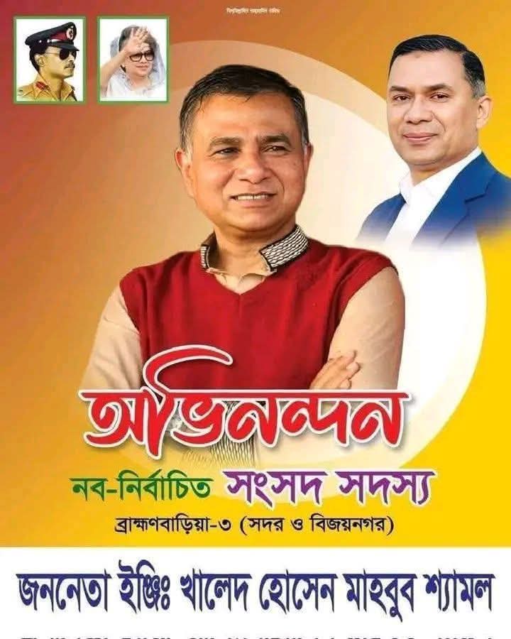 ব্রাক্ষণবাড়িয়া সদর ও বিজয়নগর বাসির পক্ষ থেকে শুভেচ্ছা এবং অভিনন্দন নবনির্বাচিত সংসদ সদস্যকে।