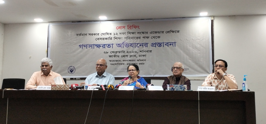 নুরুউল্লাহ হাওলাদার সবুজ, ঢাকা: বর্তমান সরকারের ঘোষিত ১২ দফা শিক্ষা সংস্কার এজেন্ডার প্রেক্ষিতে বেসরকারি শিক্ষা পরিবারের পক্ষ থেকে সুসংগঠিত প্রস্তাবনা উপস্থাপন করেছে গণসাক্ষরতা অভিযান। আজ শনিবার ২৮ ফেব্রুয়ারি ২০২৬ সকাল ১১টায় ঢাকার জাতীয় প্রেস ক্লাব-এর জহুর হোসেন চৌধুরী হলে আয়োজিত এক প্রেস ব্রিফিংয়ে এসব প্রস্তাব তুলে ধরা হয়। কর্মসূচিটি আয়োজন করে গণসাক্ষরতা অভিযান এবং সহযোগিতায় ছিল এডুকেশন ওয়াচ।